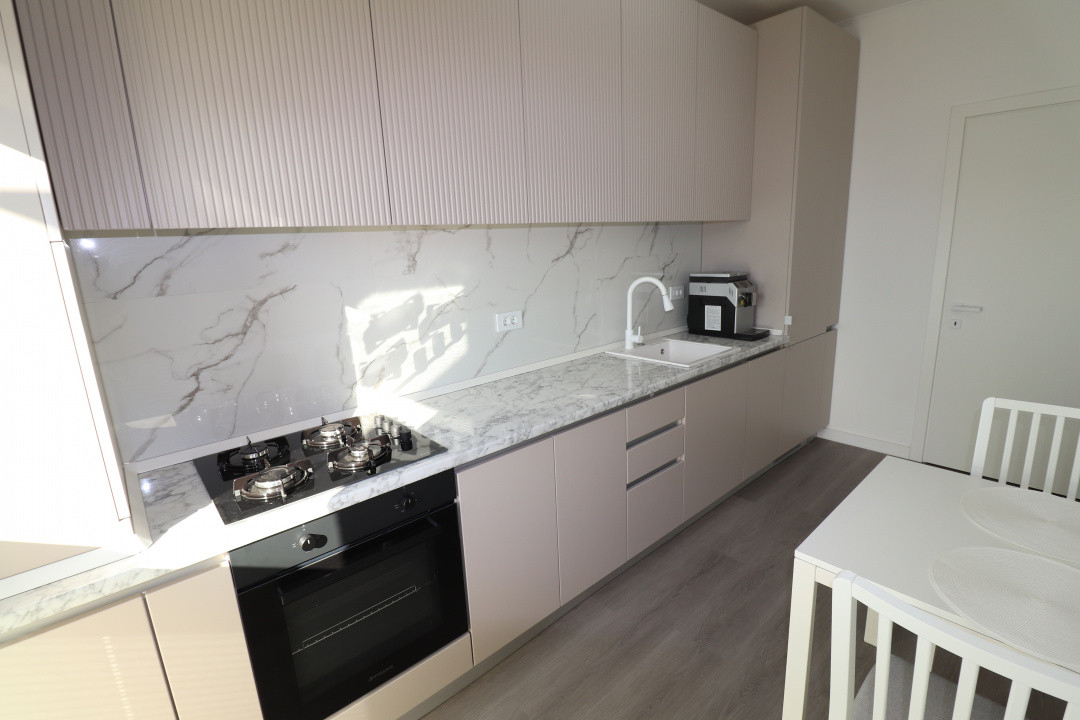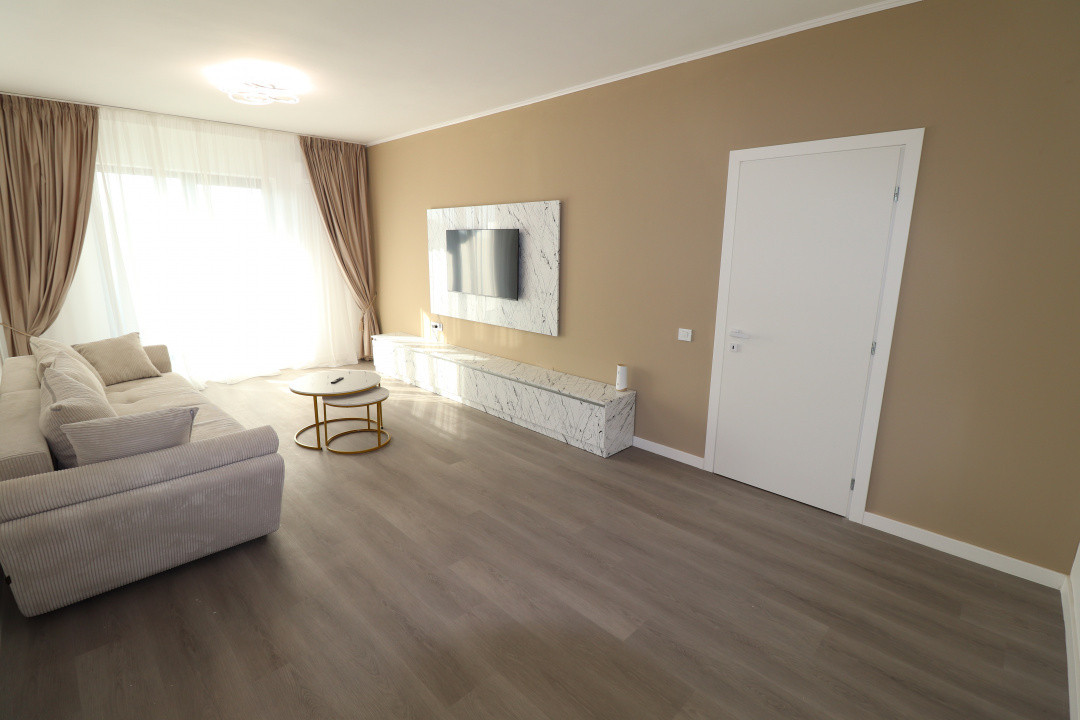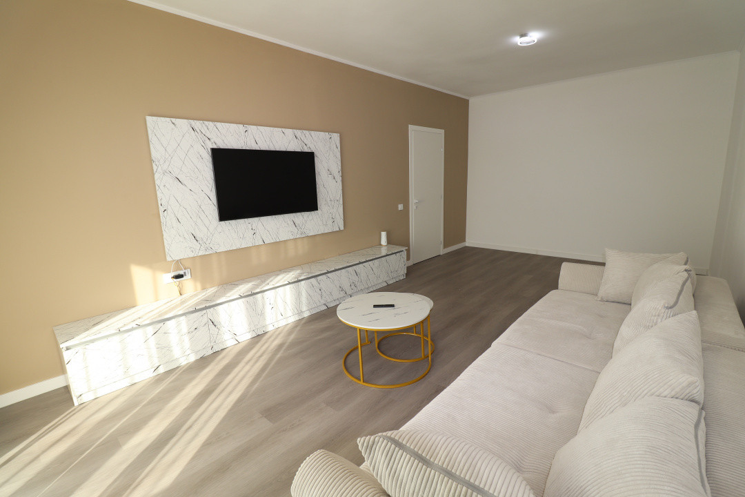 Mobilierul si electrocasnicele sunt noi, mobilarea apartamentului a fost facuta in octombrie 2025. Canapeaua din living este expensibila.