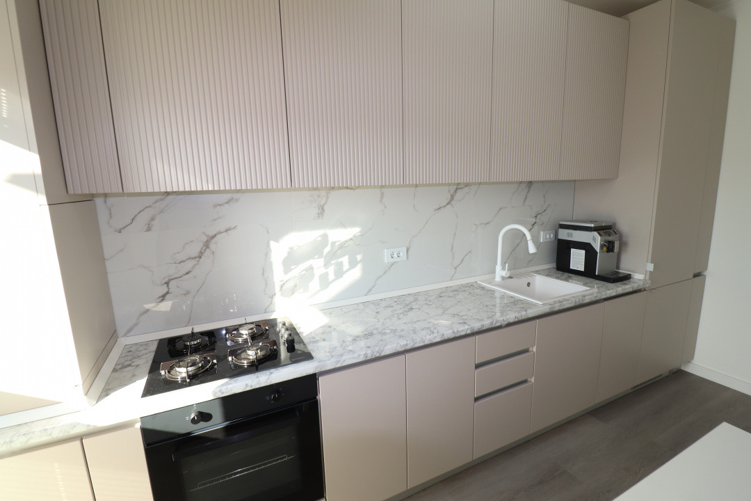 Dotari: bucatarie complet mobilata si utilata (masina de spalat vase, frigider, plita, cuptor, hota), TV, masina de spalat rufe, aparat de aer conditionat.