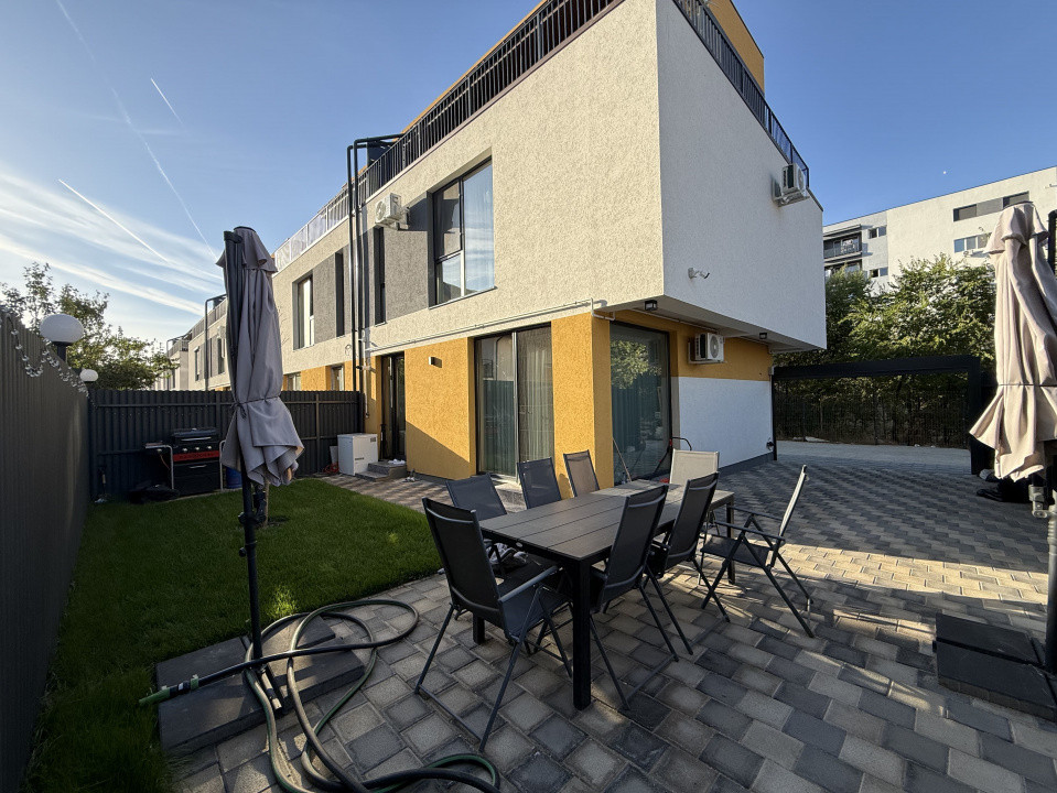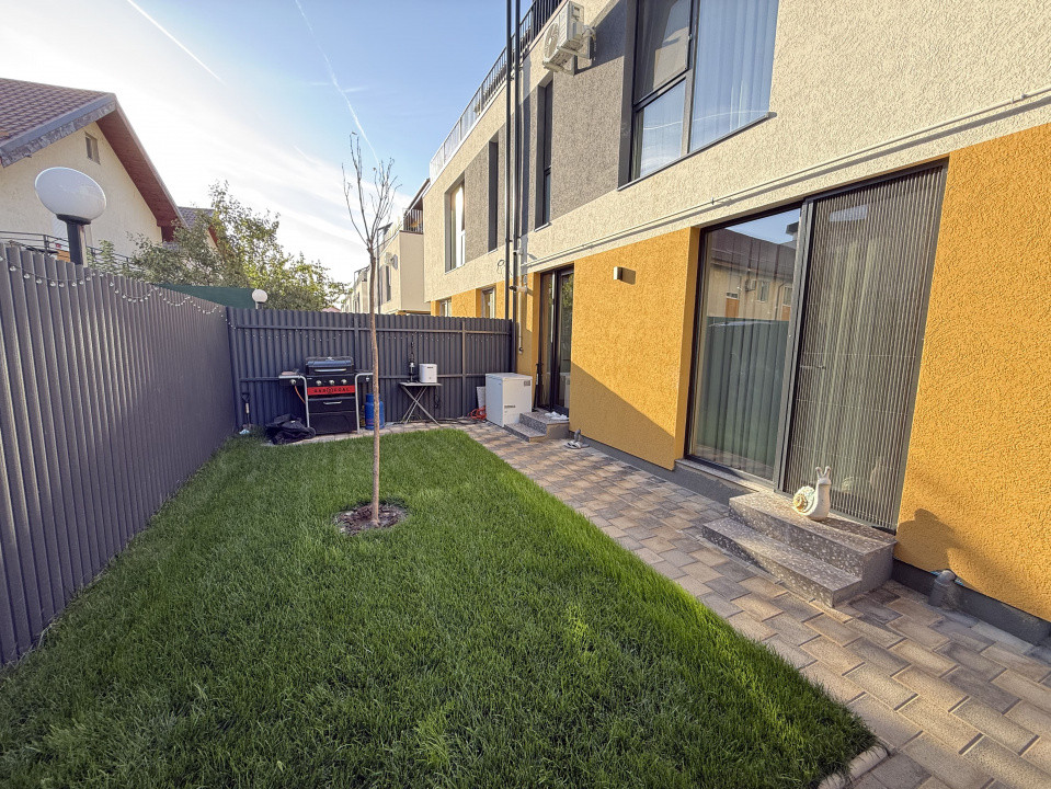 Curte libera 103 mp (partial pavata): Zona de dining exterior, gratar, mobilier de gradina, aspersoare WiFi, put propriu pentru udat gradina.
